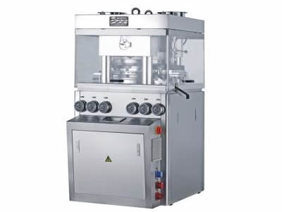 功能介紹 旋轉式壓片機可將含粉量(100目以上)不超過10%的顆粒狀原料的壓制成4~12毫米的片劑。本機不適用于半固體、潮濕顆粒、低熔點易吸潮原料和無顆粉末...…… 更多>>