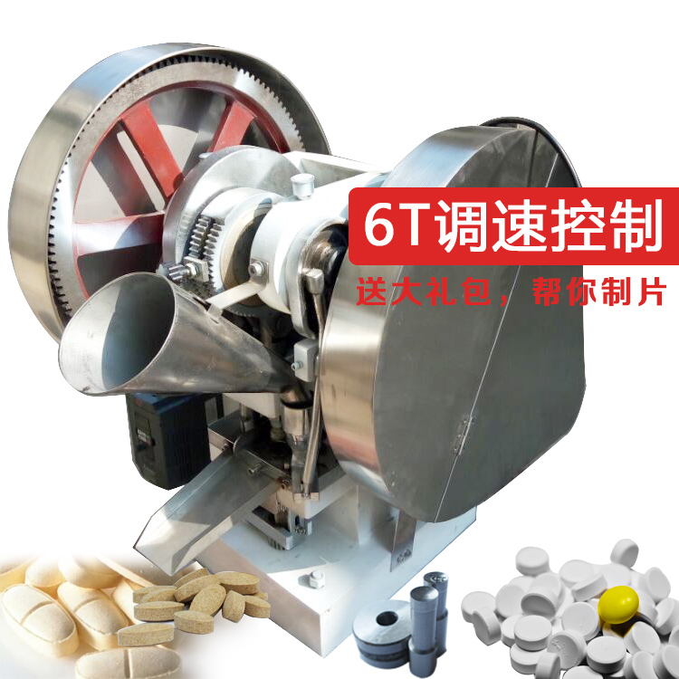 TDP-6單沖壓片機,能將粉粒狀原料壓制成片劑,可適用于制藥廠、化工廠、醫院、科研單位、實驗室試制和小批量生產。 使用方便,易于維修。本機只裝一付沖模,物料的充填深度、壓片厚度均可調節,能適應制藥行業壓制中、西藥片劑的要求和其它行業壓制各種類似產品的要求,受歡迎。