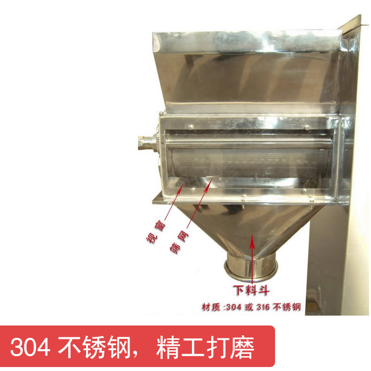 一,運用旋轉滾筒式的搖擺作用,通過篩網將潮濕粉末原料研成顆粒。二,七角滾筒兩端軸承座采用中空形式并帶有廢料出口,有效的解決了滾筒兩端廢料無處出的問題.