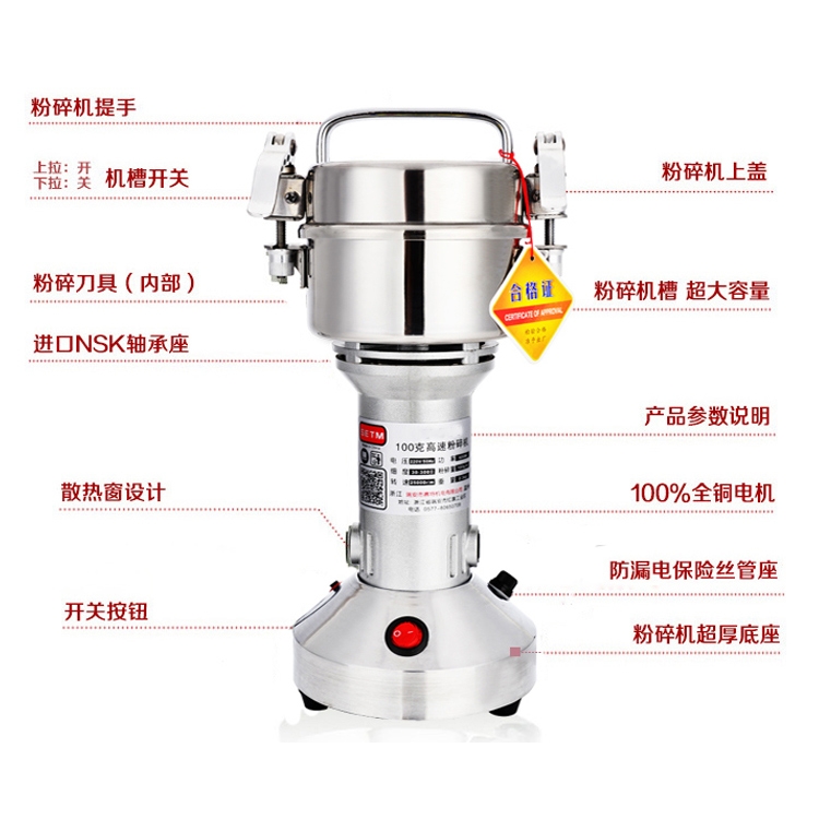NSK軸承和精品電機,結(jié)構(gòu)精密,噪音低,體積小,操作方便,精巧美觀藥材無損耗,工作時無粉塵,不震動,省電又安全,