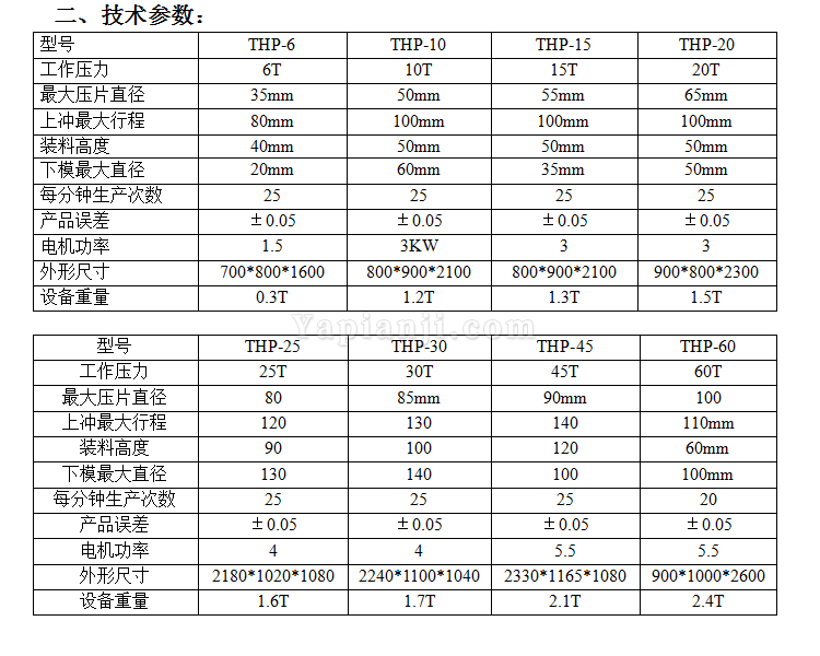 ,它是制藥、化工、食品、電子等工業部門處理顆粒原料壓制成片的必須設備之一,它適用于小批量生產,實驗室,醫院等部門壓制藥片、觸媒、糖片、鈣片、咖啡片、冶金粉末、電子元件和各種農業化肥劑等。它可以壓制各種異形、環形片劑,并可以壓制雙面刻有商標、文字及簡單圖形的片劑,因其壓力大,強度大,特別適合于壓制難成型的粉末片劑,如陶瓷粉末,金屬粉末等