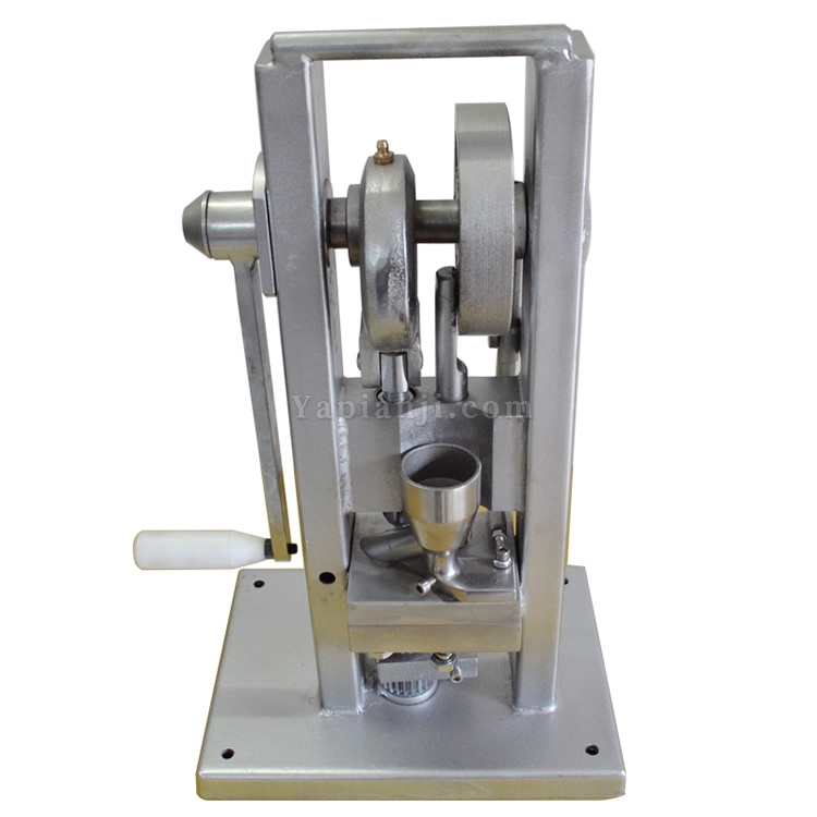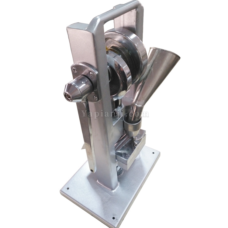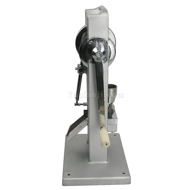 本機使用方便,體積小、重量輕。本機只裝一付沖模(可以更換其他圓形或者異形模具),物料的充填深度、壓片厚度、重量均可調(diào)節(jié),能適應(yīng)制藥行業(yè)壓制中、西藥片劑的要求和其它行業(yè)壓制各種類似產(chǎn)品的要求,該設(shè)備為純手動單沖