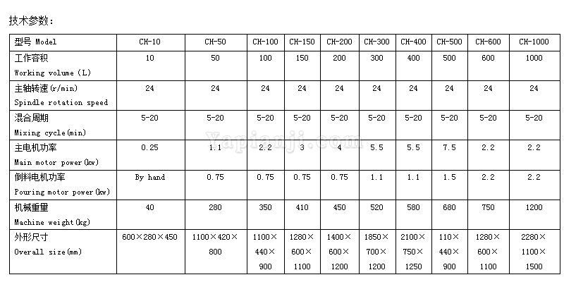 功能概述: 本機用于混合粉狀或糊狀的物料,使不同質物料混合均勻。其特點是臥式槽型單槳混合,攪抖槳為通軸式,便于清洗。與物體接觸部分均為不銹鋼制作,運用槳葉在料槽內的旋轉將不同質物料均勻混合。圓槽混合機料槽與槳葉同時反向運轉,較一般槽型混合機效率更高,混合更均勻。廣泛用于食品、制藥、化工等行業的混合攪拌。