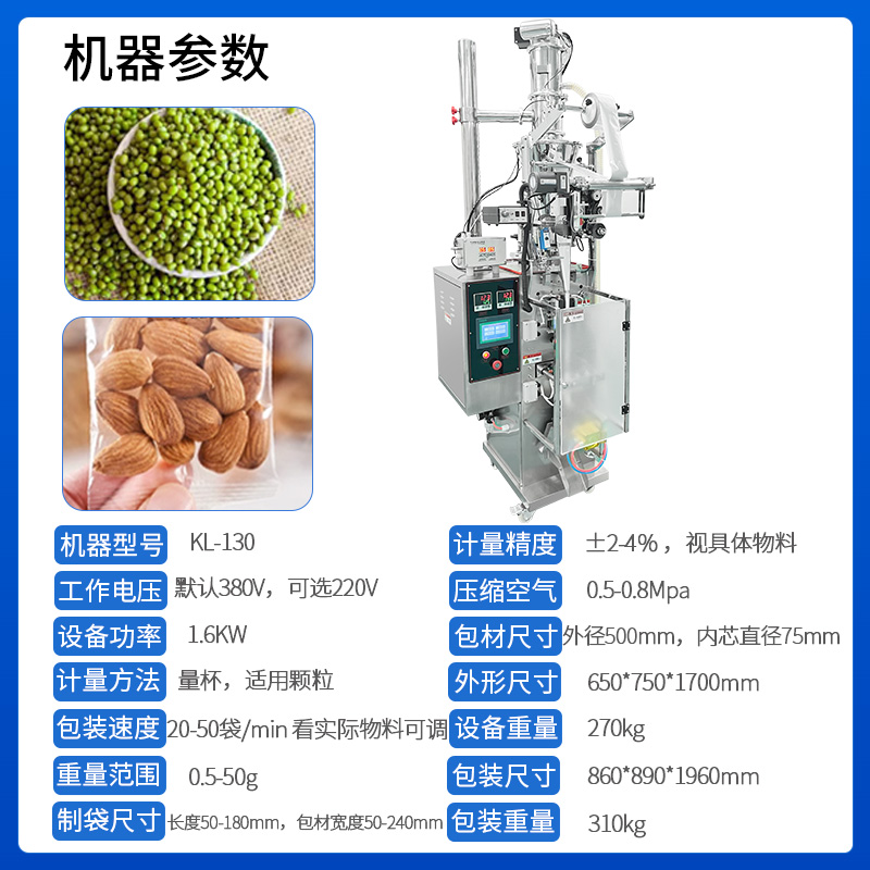包裝速度:20-50袋/min 看實際物料可調
