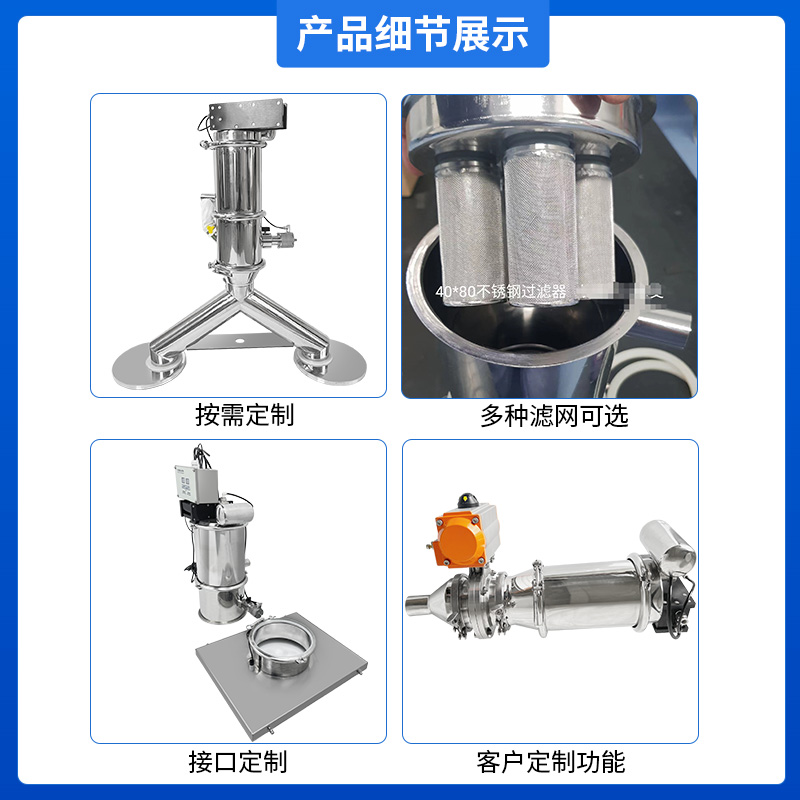 1、利用真空發生器作為真空源,真空發生器形成真空上料 2、不銹鋼材質,可以設置上料、下料時間,需要連接空壓機 3、接近限位開關,控制物料進料,達到限位停止工作 4、有多款型號可以選擇,滿足不同的需求,可以按需定制接口等